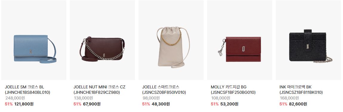 할인 품목 : 가방, 목걸이, 귀걸이 등