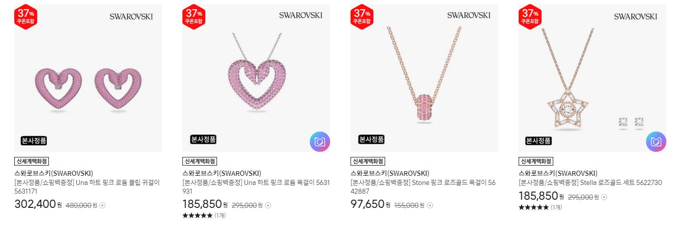 스와로브스키 다양한 제품을 할인 판매하네요.