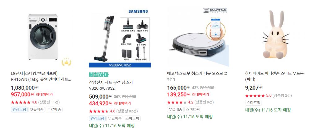 할인 품목 : 휴대폰, 청소기, 컴퓨터 등