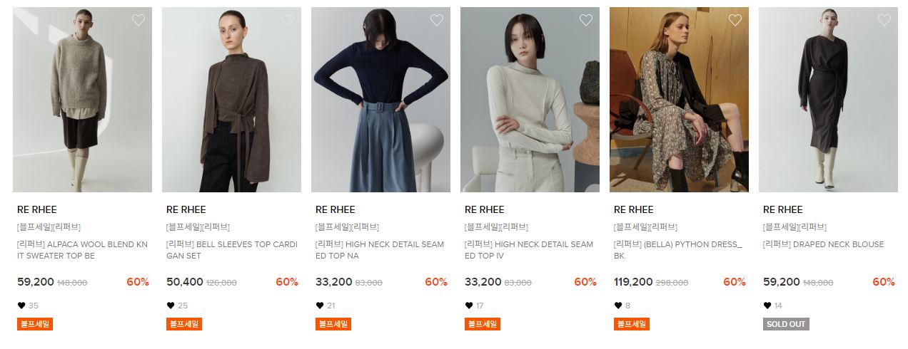 RE RHEE 리퍼브 최대 60% 세일 정보 포스팅입니다.
