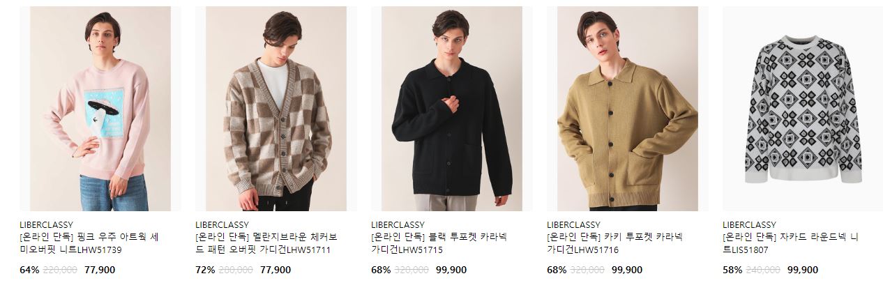 할인 품목 : 코트, 니트, 가디건 등