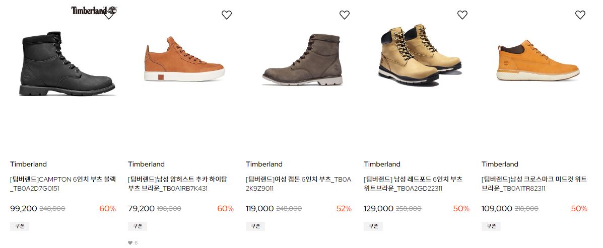 팀버랜드 다양한 제품을 할인 판매하네요.