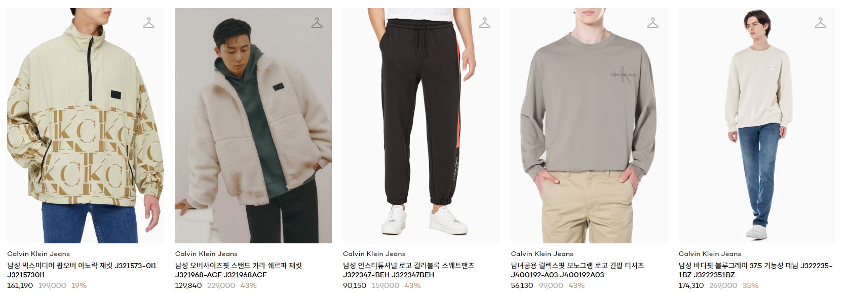 할인 품목 : 티셔츠, 자켓, 운동화 등