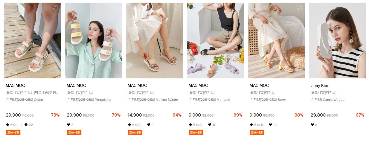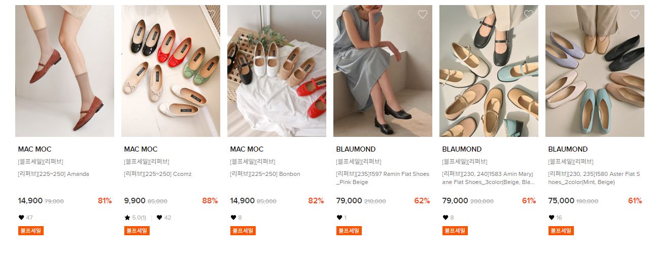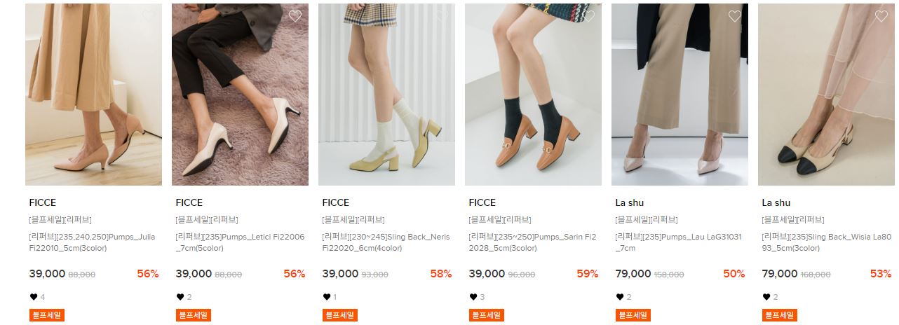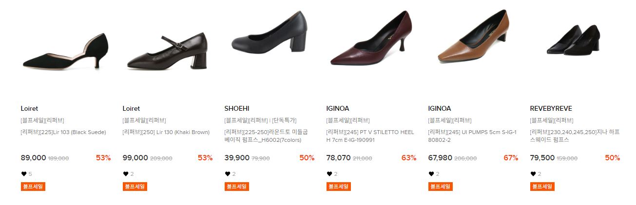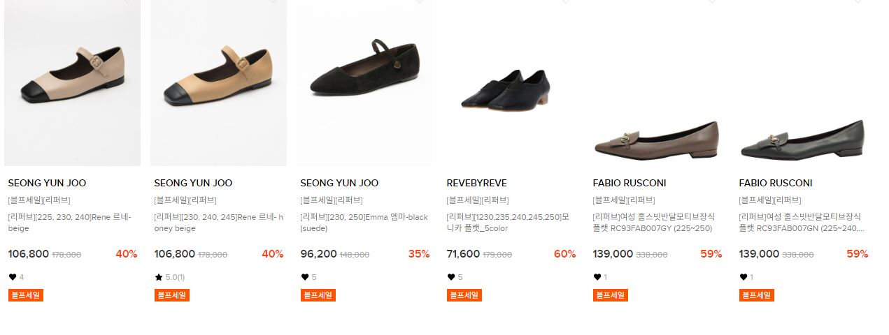 할인 품목 : 운동화, 펌프스, 플랫슈즈 등