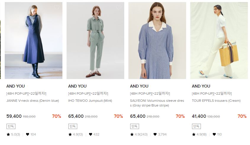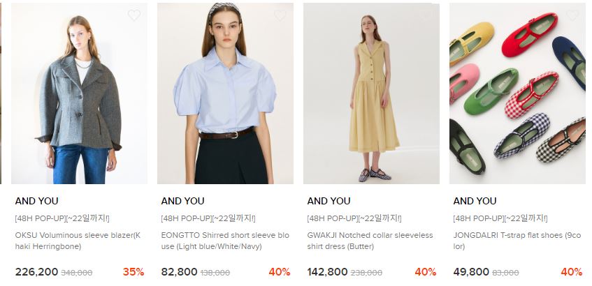할인 품목 : 원피스, 티셔츠, 신발 등