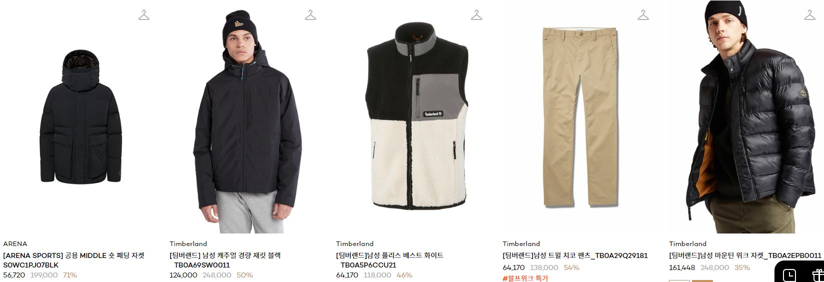 할인 품목 : 점퍼, 티셔츠, 운동화, 속옷 등