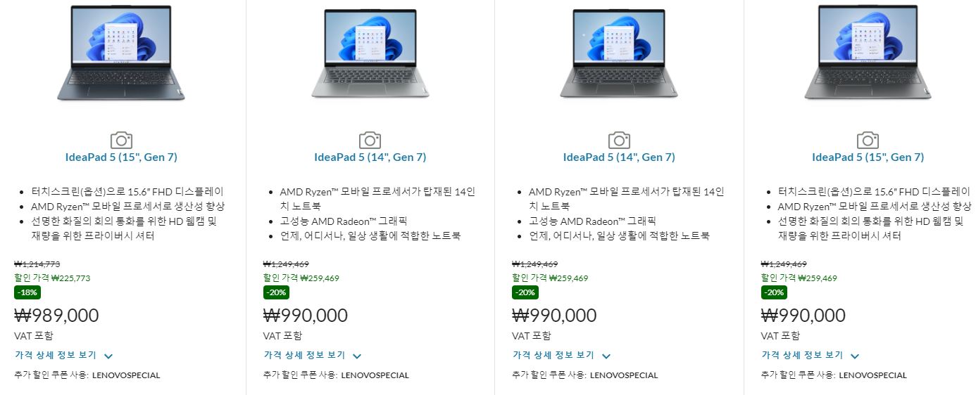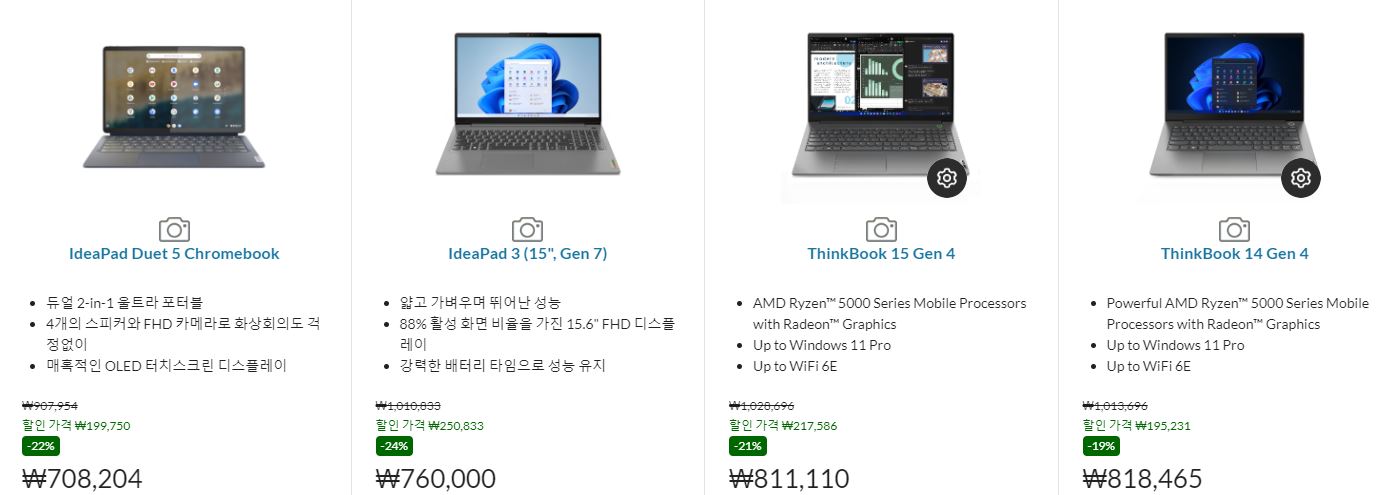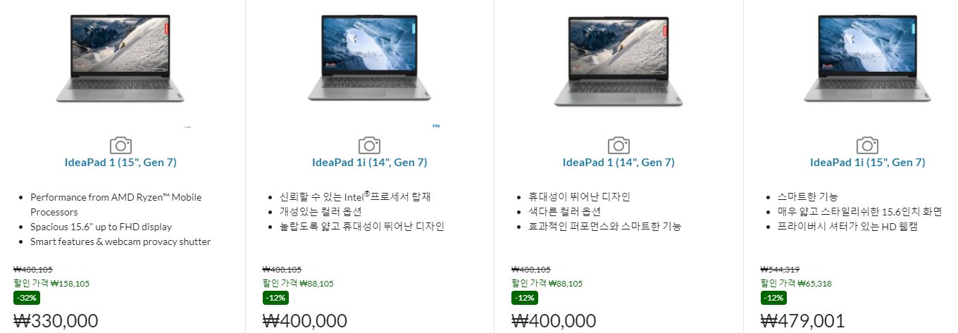 레노버 사이트에서 할인 이벤트를 진행하네요.