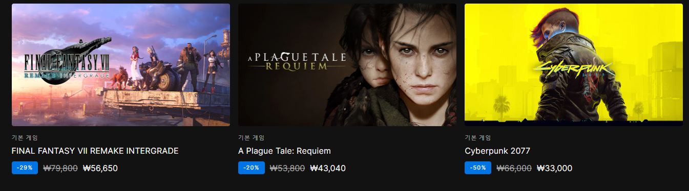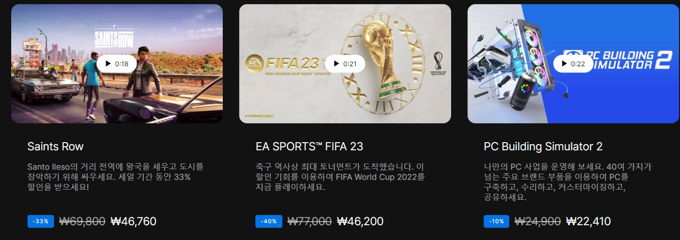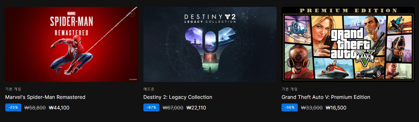 에픽게임즈 사이트에서 할인 이벤트를 진행하네요.