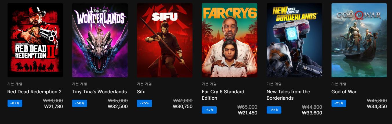 에픽게임즈 사이트에서 할인 이벤트를 진행하네요.
