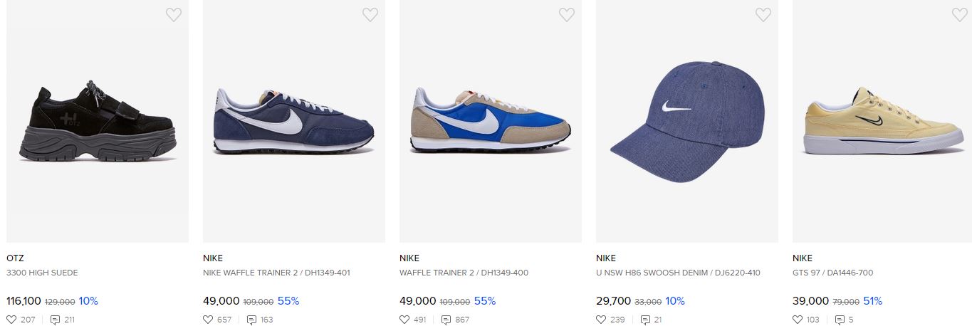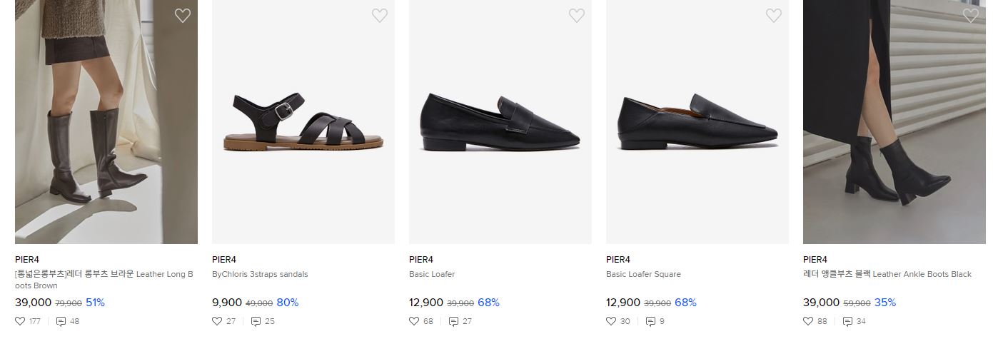 할인 품목 : 운동화, 구두, 모자 등