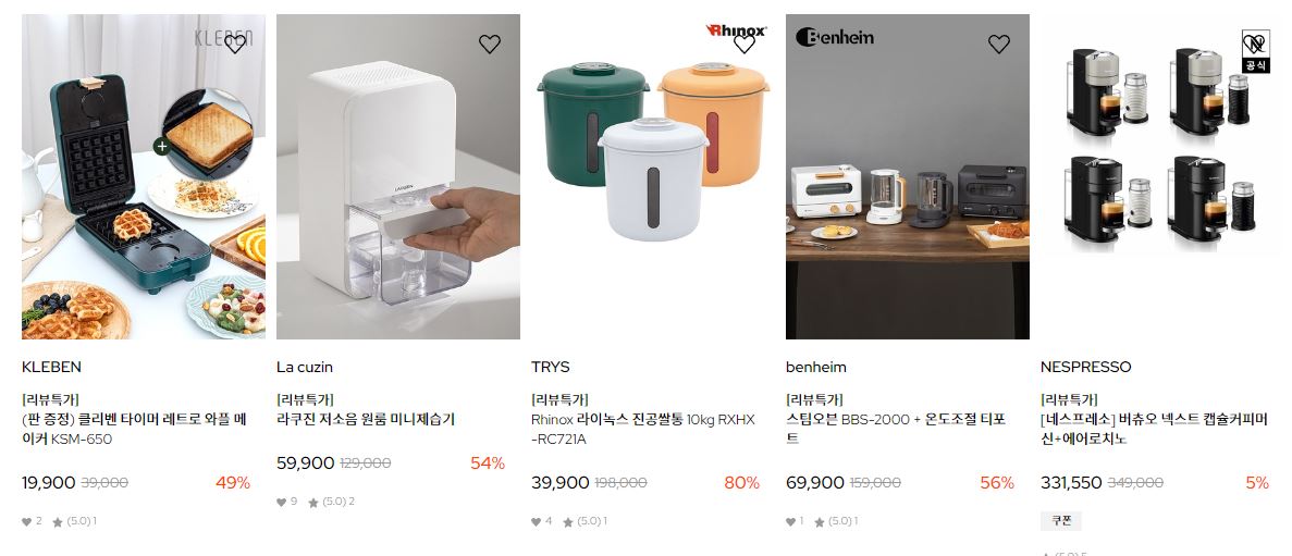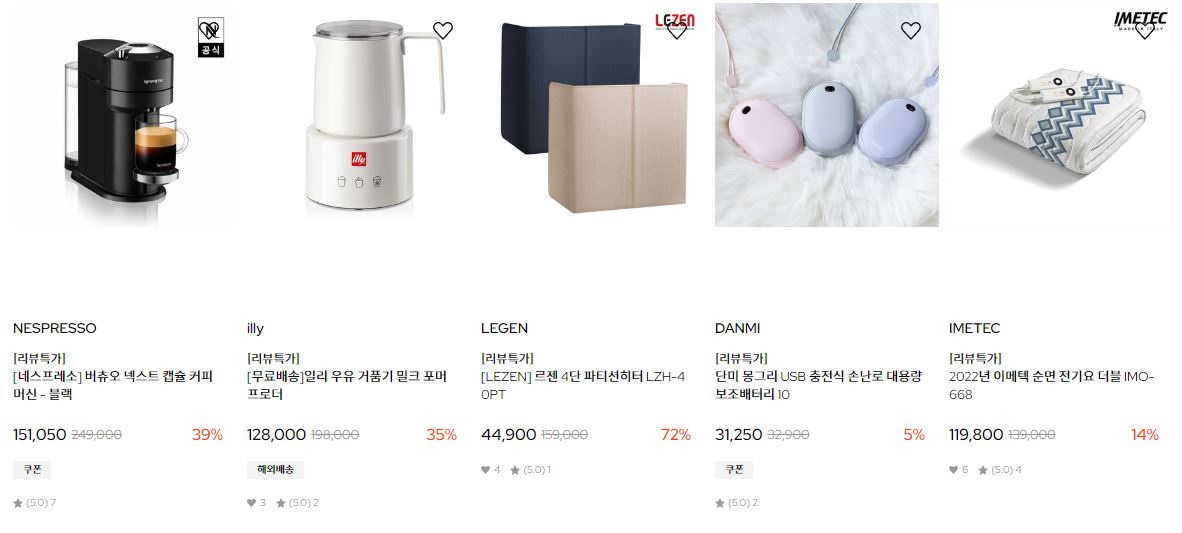 할인 품목 : 이불세트, 커피머신, 잔 등