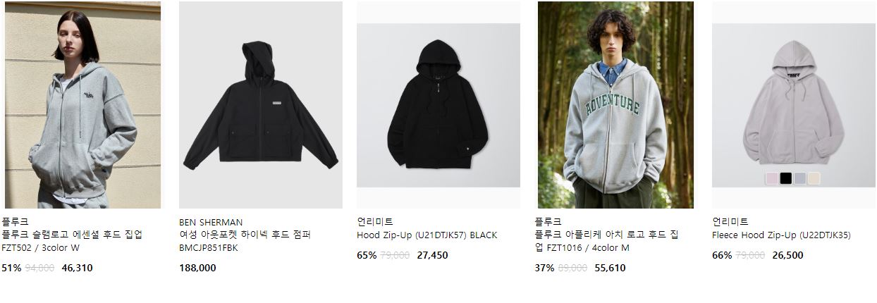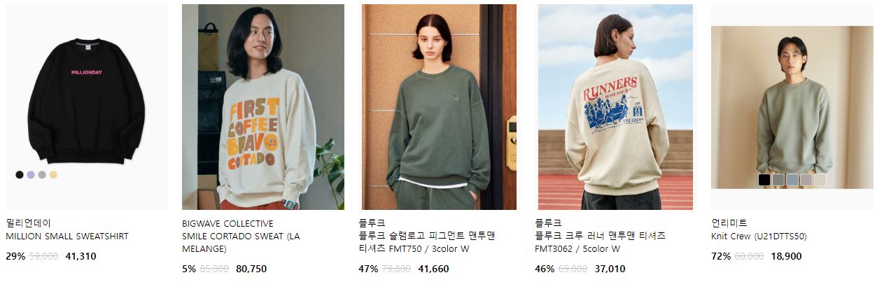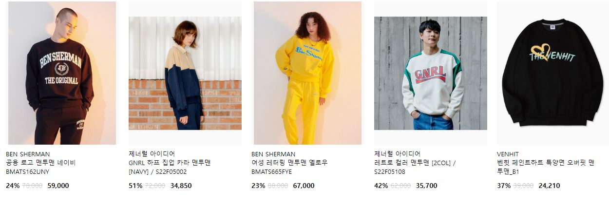 할인 품목 : 맨투맨, 후드티, 팬츠 등