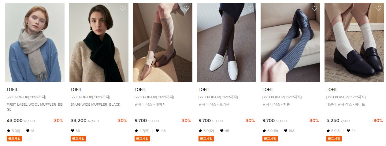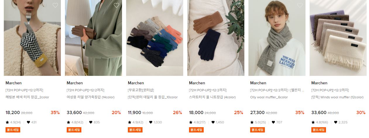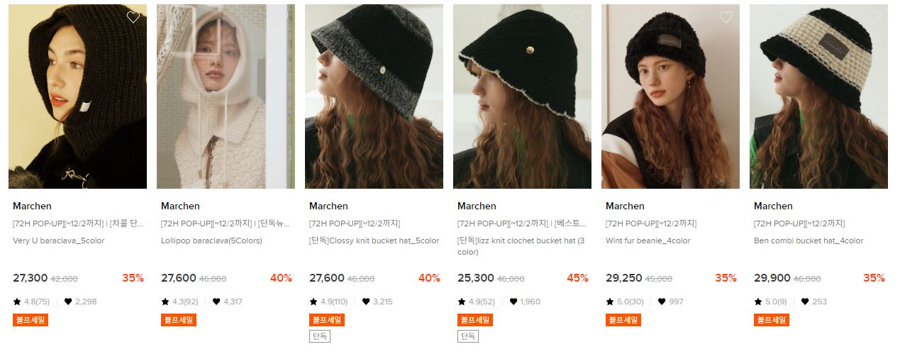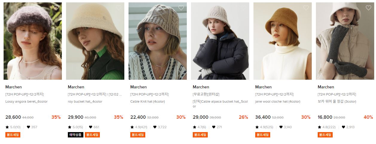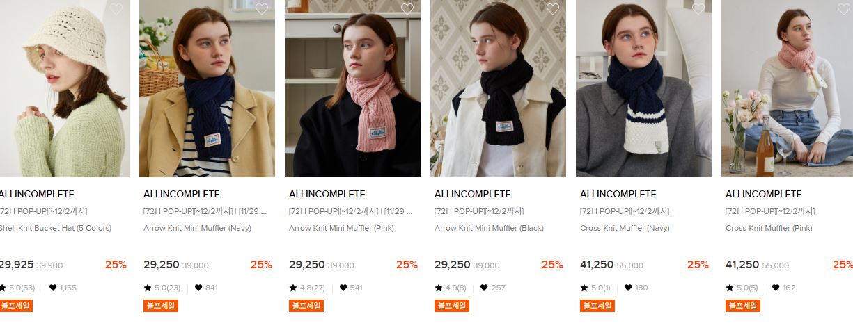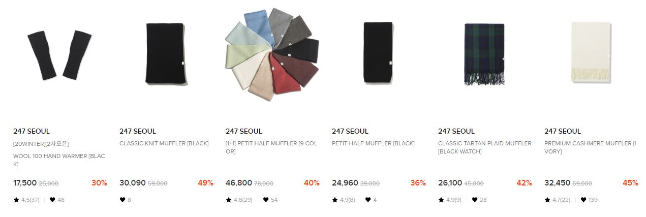 할인 품목 : 모자, 머플러 등