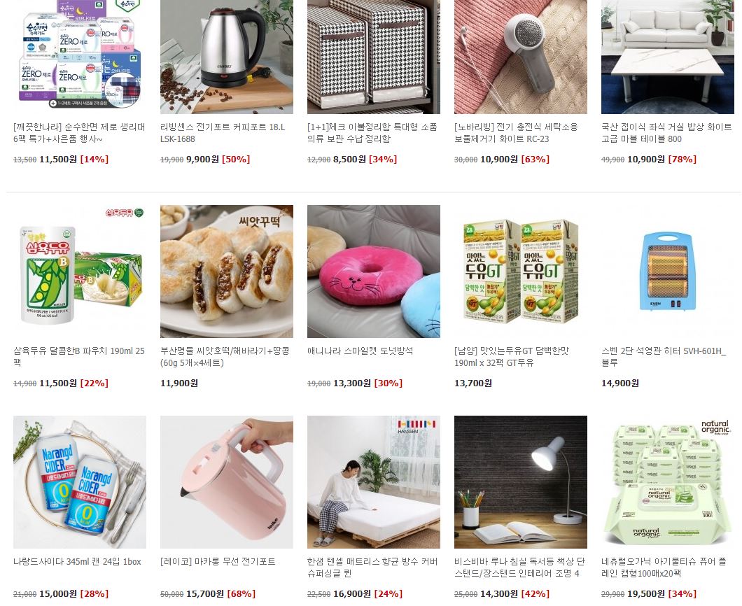 할인 품목 : 커피포트, 방한샌들 등