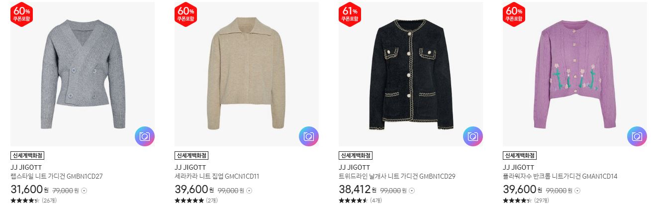 할인 품목 : 가디건, 코트, 원피스 등