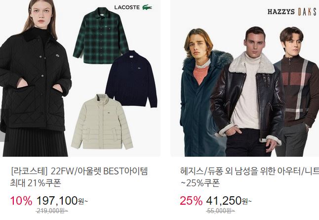 할인 품목 : 의류, 가방, 신발 등