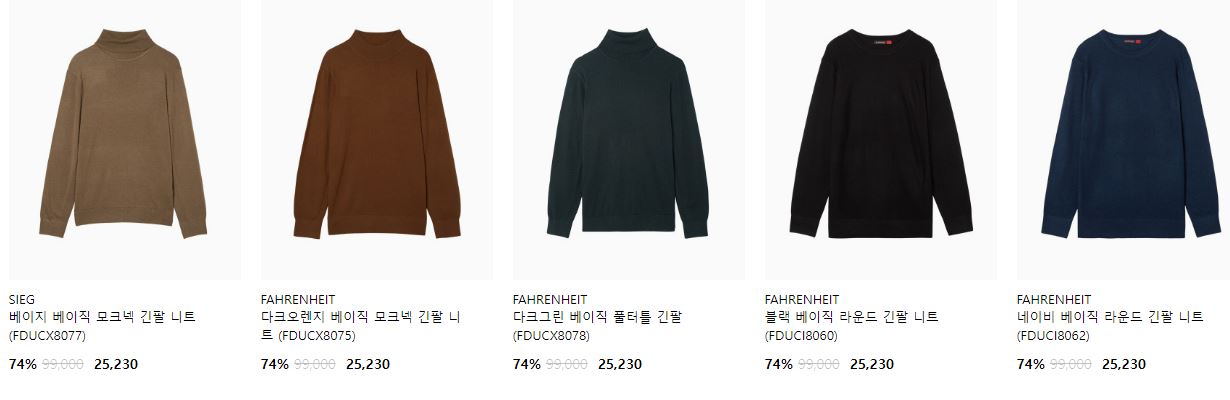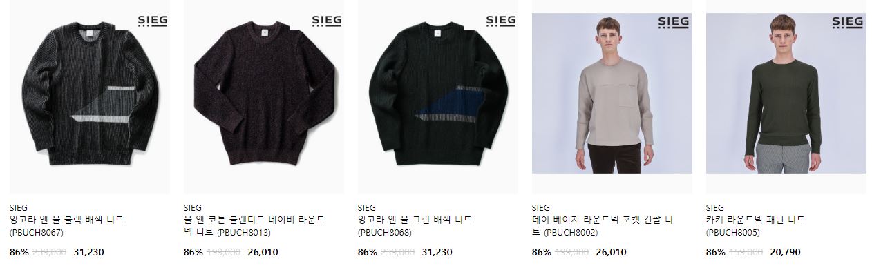 할인 품목 : 코트, 점퍼, 니트 등