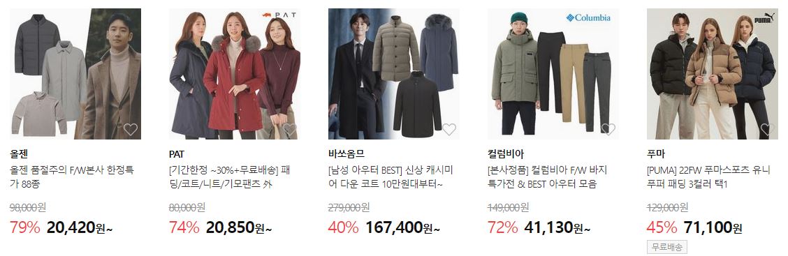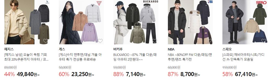 할인 품목 : 의류, 가전, 가방, 신발 등