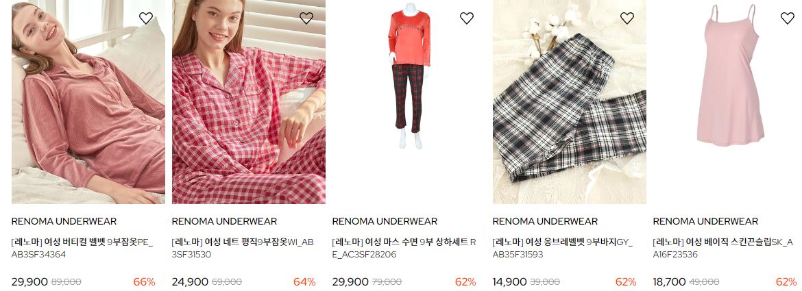할인 품목 : 속옷, 잠옷 등