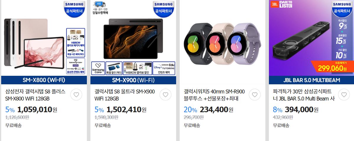 할인 품목 : 휴대폰, 노트북, 사운드바 등