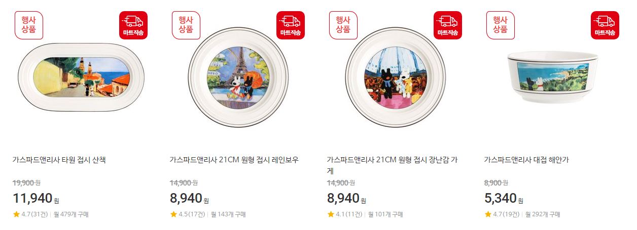 할인 품목 : 트리, 전구, 접시 등