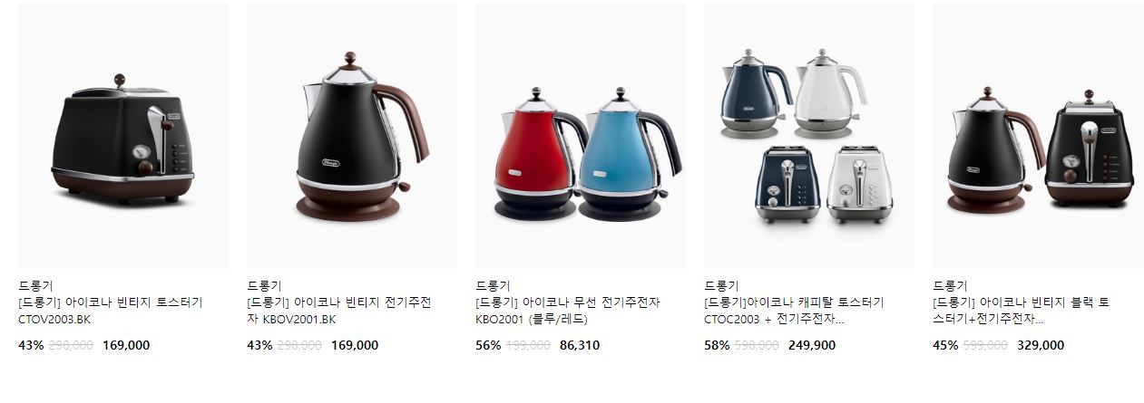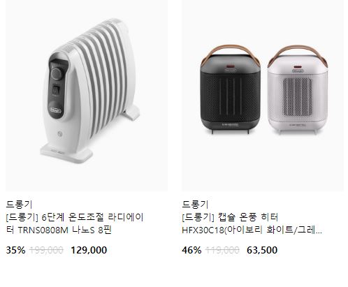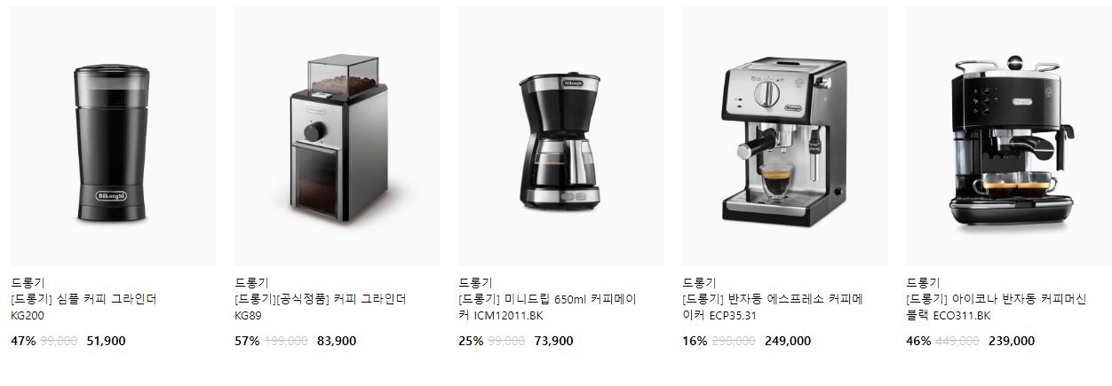 드롱기 다양한 제품을 할인 판매하네요.