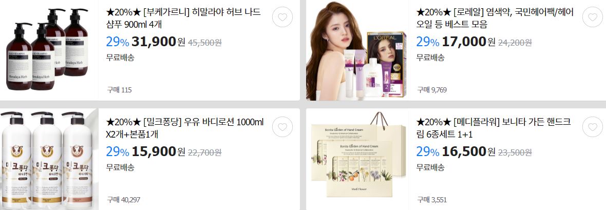 할인 품목 : 바디로션, 샴푸 등
