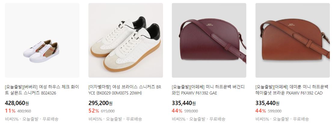 할인 품목 : 의류, 신발, 가방, 화장품 등