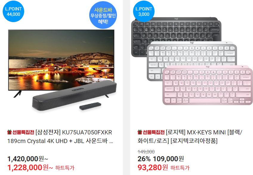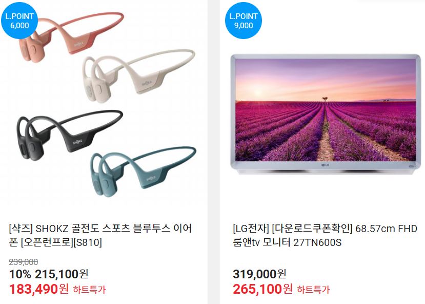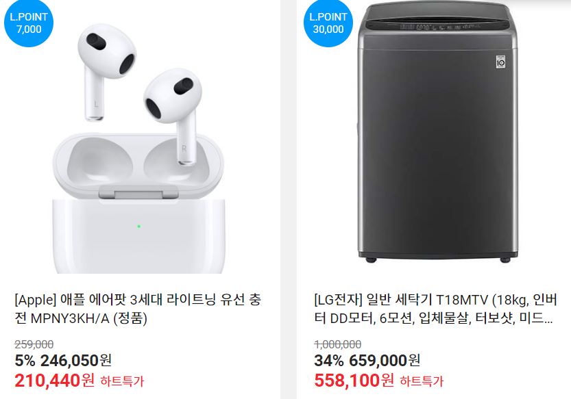 할인 품목 : 모니터, 노트북, 세탁기 등