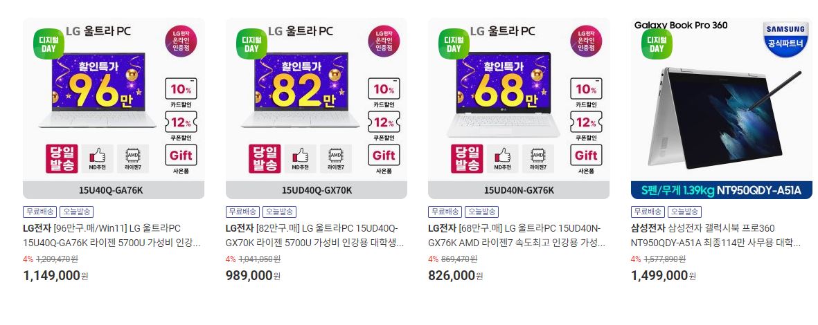 할인 품목 : 노트북, 모니터 등