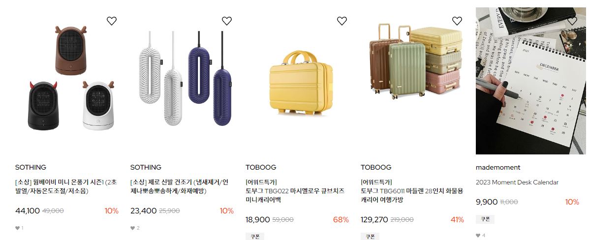 할인 품목 : 캐리어, 가습기 등