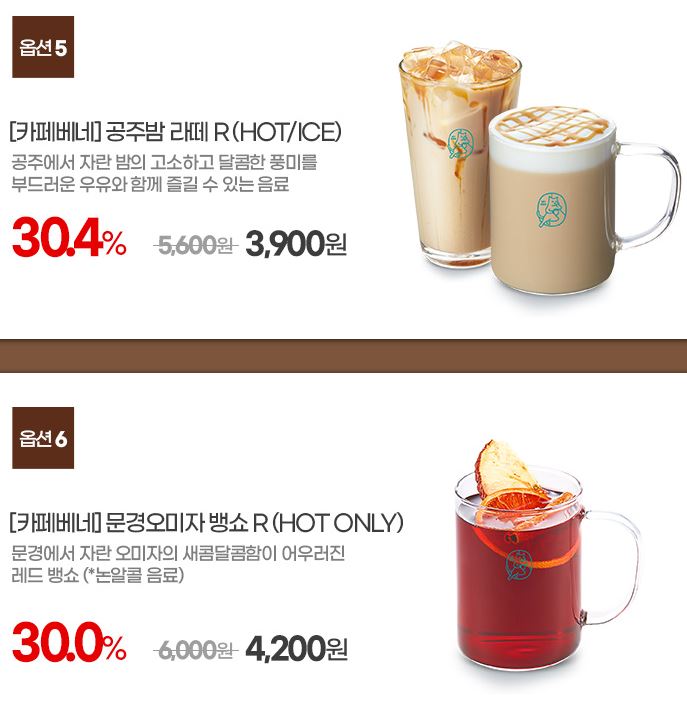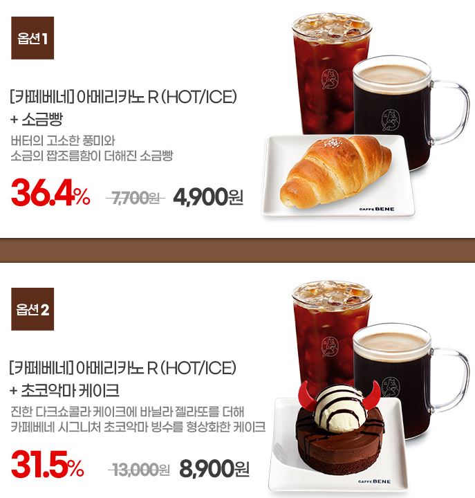 할인 메뉴 : 아메리카노+소금빵, 공주밤 라떼 등
