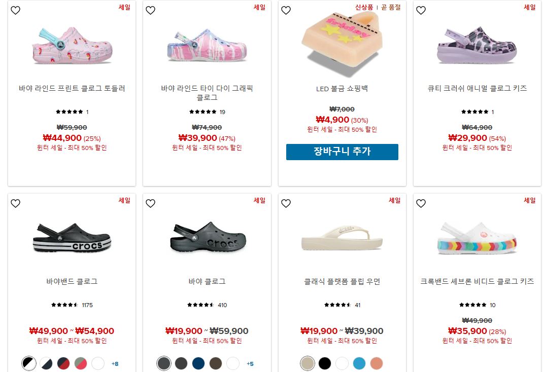 크록스 다양한 제품을 할인 판매하네요.