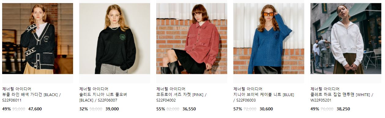 할인 품목 : 니트, 가디건, 코트 등