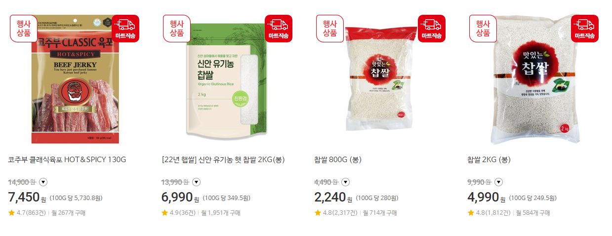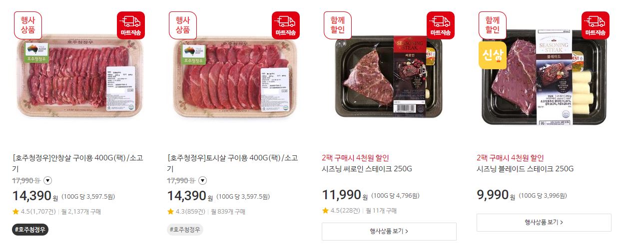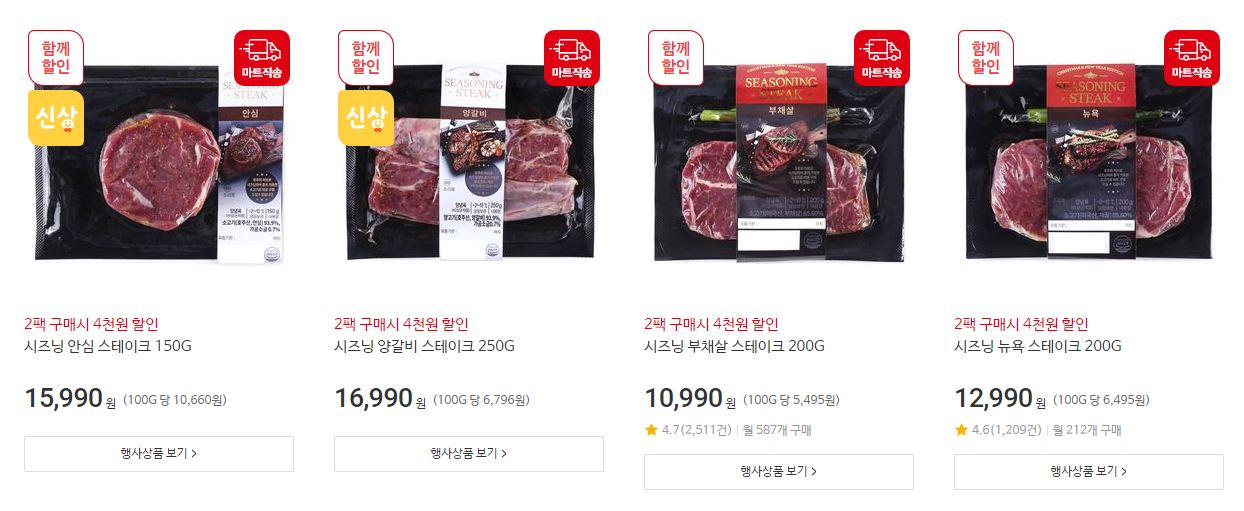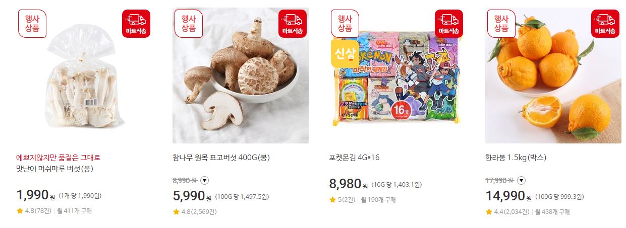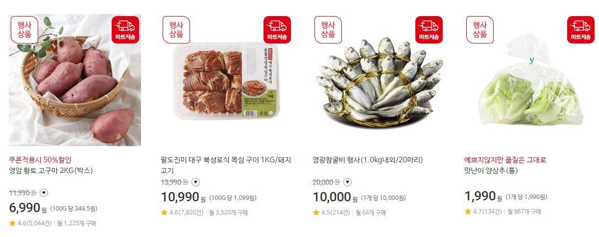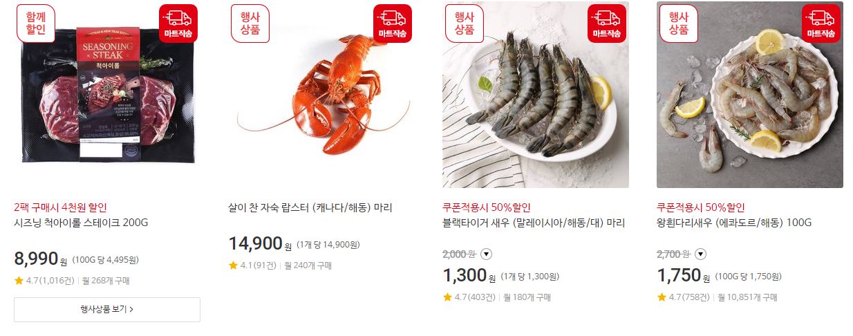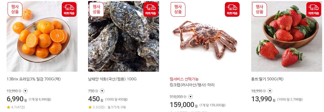 할인 품목 : 석화, 킹크랩, 딸기 등