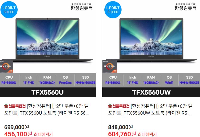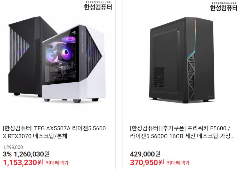 한성컴퓨터 초특가 기획전 정보 [링크]
