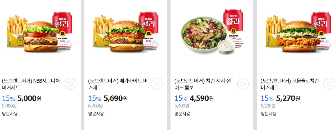 할인 품목 : 콰트로맥앤치즈버거세트, 코울스로치킨버거세트 등