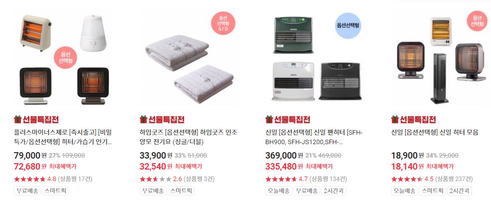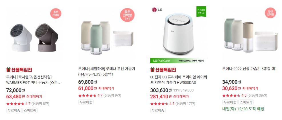 할인 품목 : 전기요, 가습기, 청소기 등