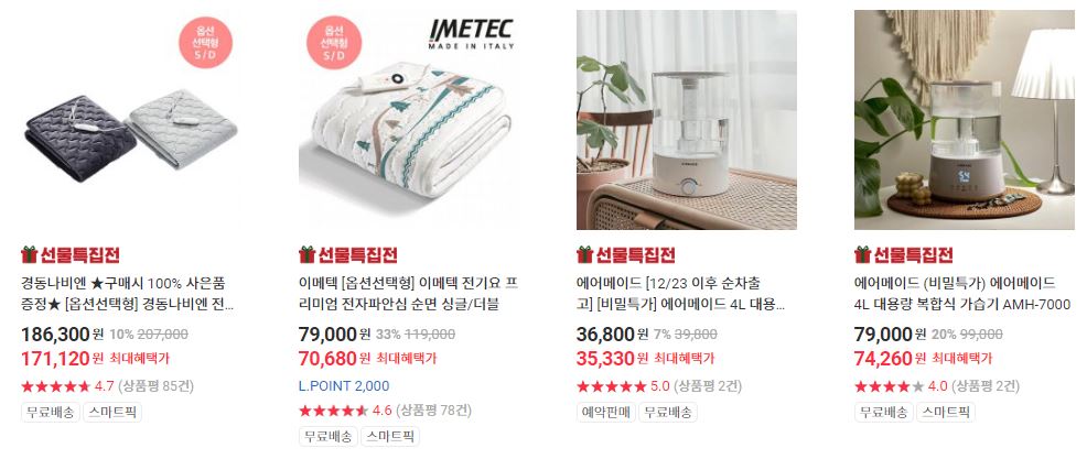 할인 품목 : 전기요, 가습기, 청소기 등