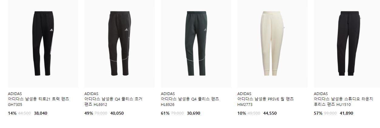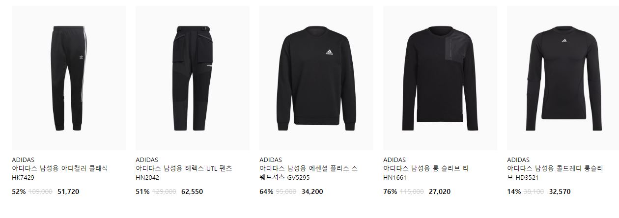 아디다스 다양한 제품을 할인 판매하네요.