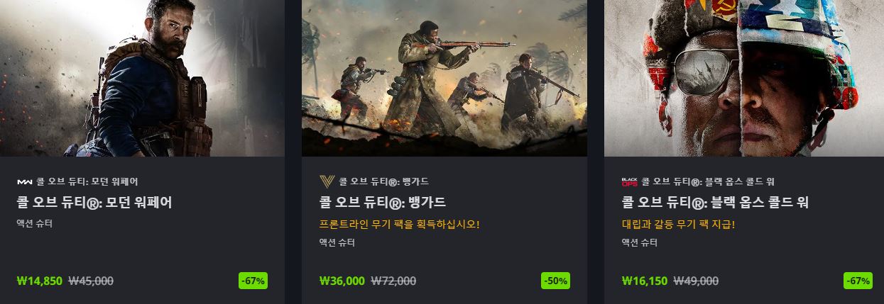 할인 품목 : 스타크래프트리마스터, 콜오브듀티 시리즈 등