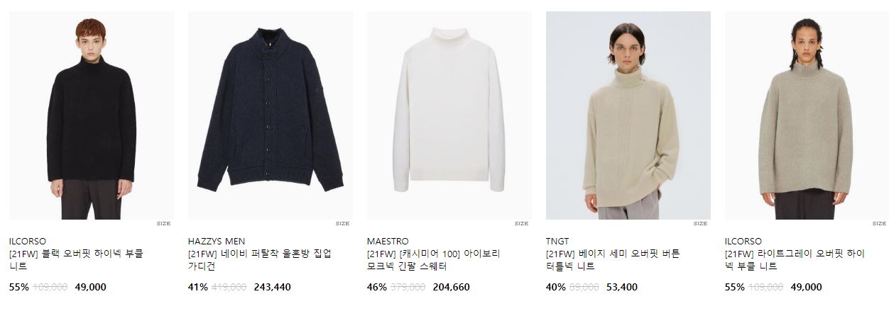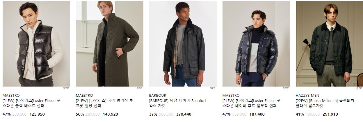 할인 품목 : 코트, 점퍼, 니트 등