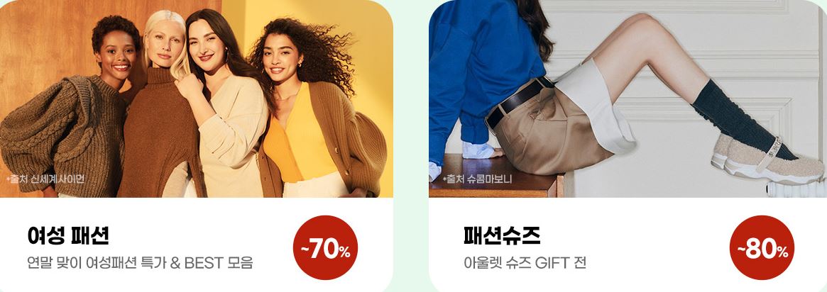 할인 품목 : 의류, 신발, 가방 등