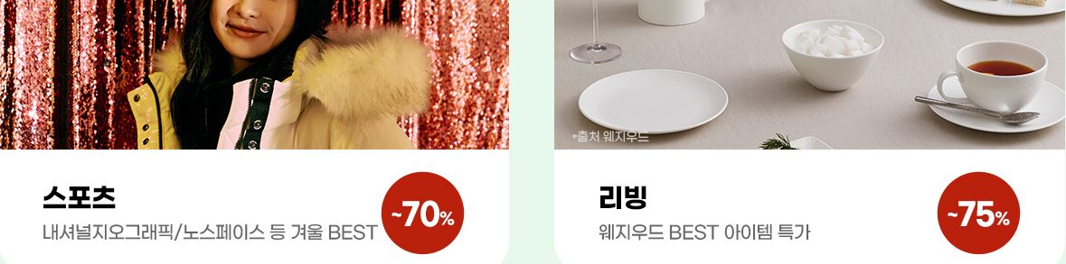 할인 품목 : 의류, 신발, 가방 등