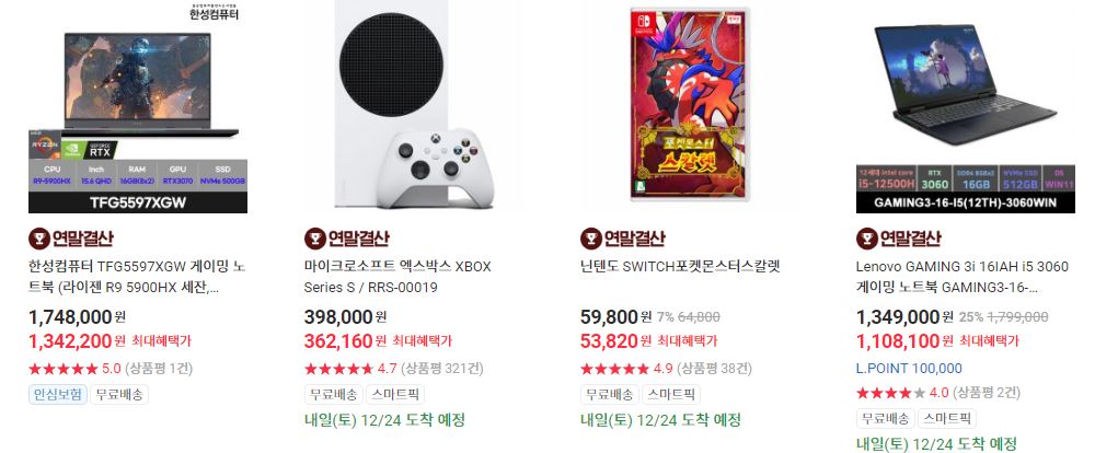 할인 품목 : 노트북, 게임기, 냉장고 등