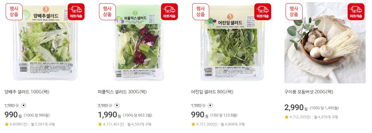 할인 품목 : 킹크랩, 소고기, 과일 등