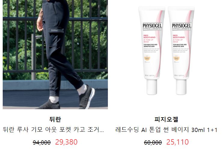 할인 품목 : 의류, 신발, 화장품 등