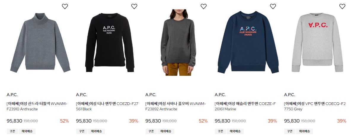 할인 품목 : 스웨터, 티셔츠, 점퍼 등
