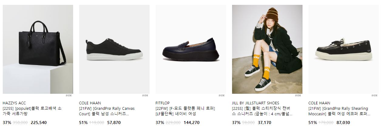 할인 품목 : 가방, 지갑, 운동화 등