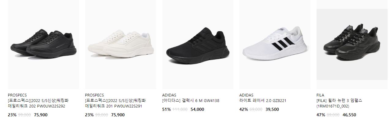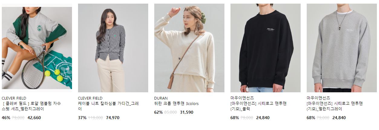 할인 품목 : 후드티, 팬츠, 운동화 등